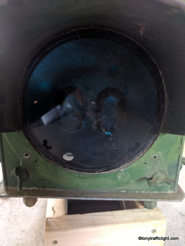 The Command Lenses are in pretty good shape also. They are called “command” lenses since the have either STOP, CAUTION or GO embossed into them. These were on most of the early Crouse Hinds signals. 1 of the GO is missing and 1 is cracked. 1 of the STOP lenses is cracked and half of it is missing. I do have some in another signal that can fill the void.