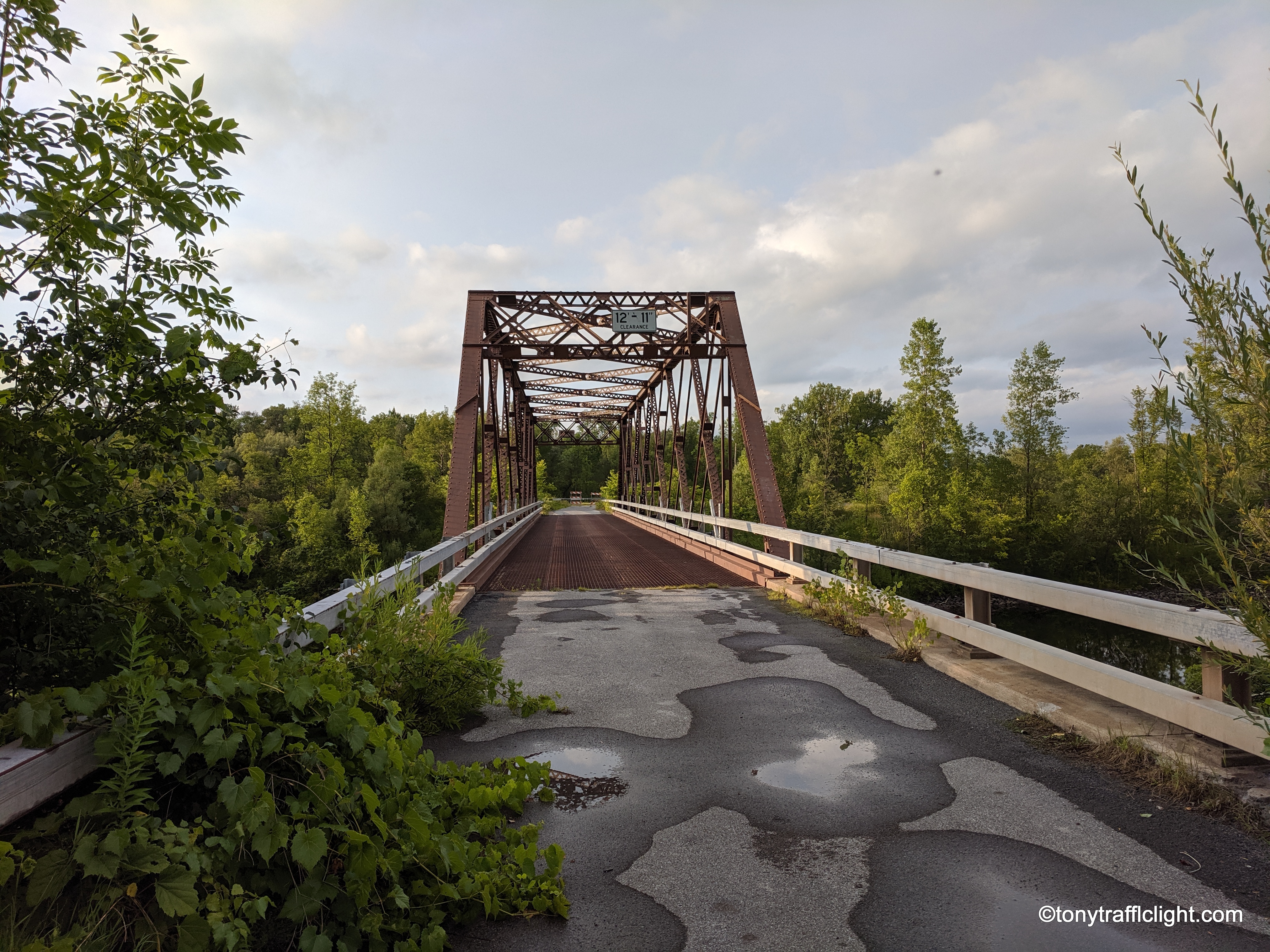 This bridge has been closes for about 8 years now. The town got a grant to replace it. It was a nice bridge but structurally unsound. Here’s the Bridgehunter page about it.