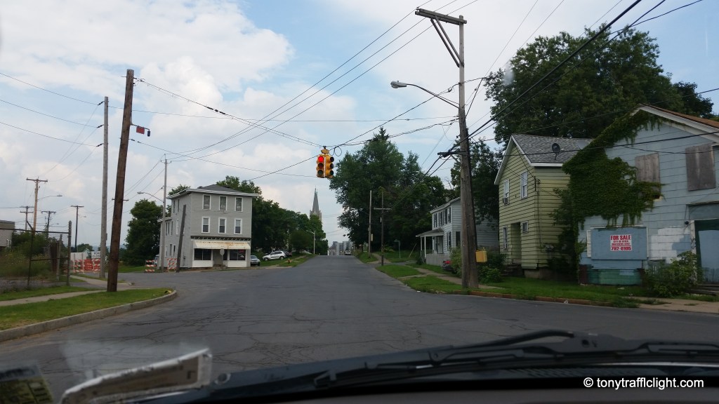 Another typical weird Utica Setup. No signal facing the south bound lane on Genesee Street. There were 3 intersections all tired into one controller here. Accidents all the time. All gone except for the newly reopened Uptown.
