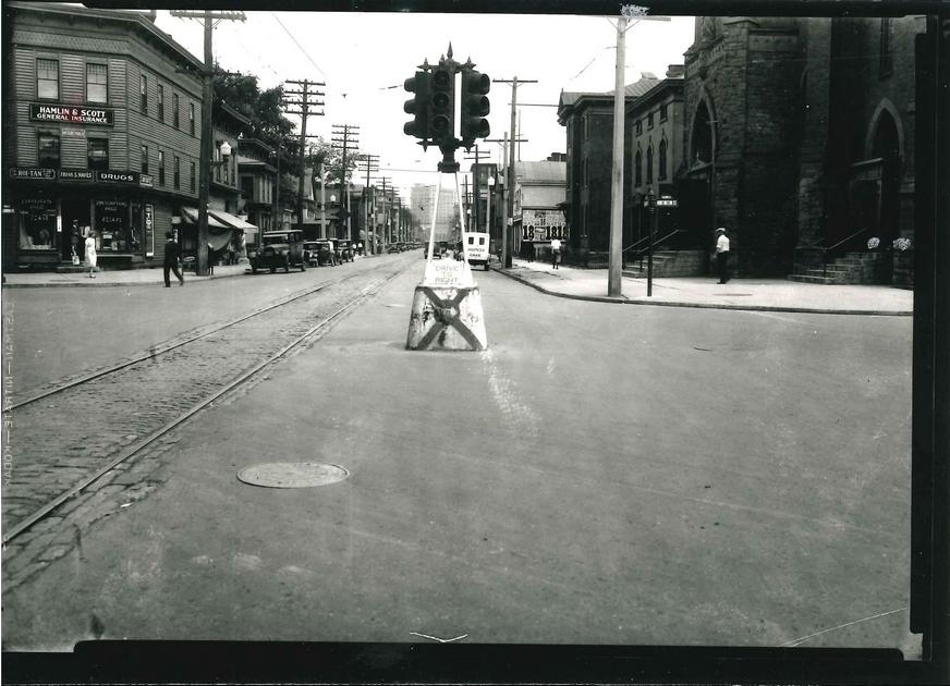 This was a Utica signal that I had never know about. The Utica Dummy Light was at the intersection of Columbia, Varick and Huntington Streets in Utica. Never knew there was one in Utica. They’re called a dummy light since they are set in the middle of the intersection, and not at the sides, corners or above (thus forming a crash hazard). These lights are placed like how traffic cop platforms were set dead center of intersections.