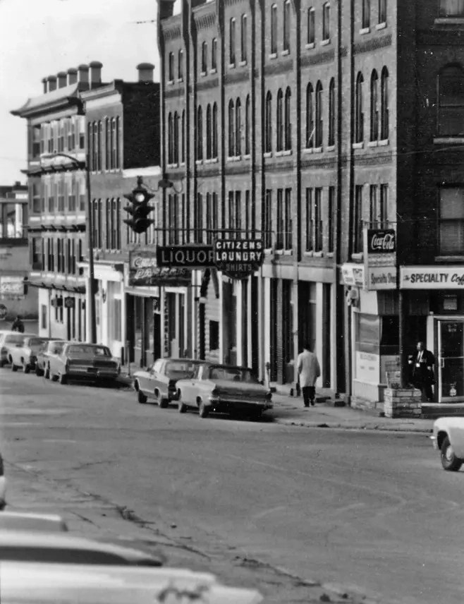 Another typical Utica setup with a Crouse Hinds Fixed 4 Way and a disconnect box to the side. All long gone as of 1968 when this street vanished for an Urban Renewal project.