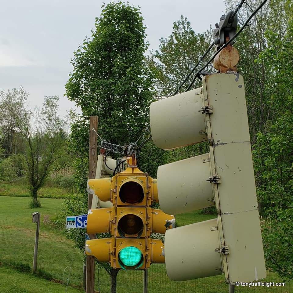 I was lucky enough to get all the old reflectors and lenses from these signals that were saved from the dumpster when LEDs were put in the red and green lights on these. That was sometime in the mid 2000’s I’d guess. The municipality had them all boxed away and I got all that when I bought these from them in 2018